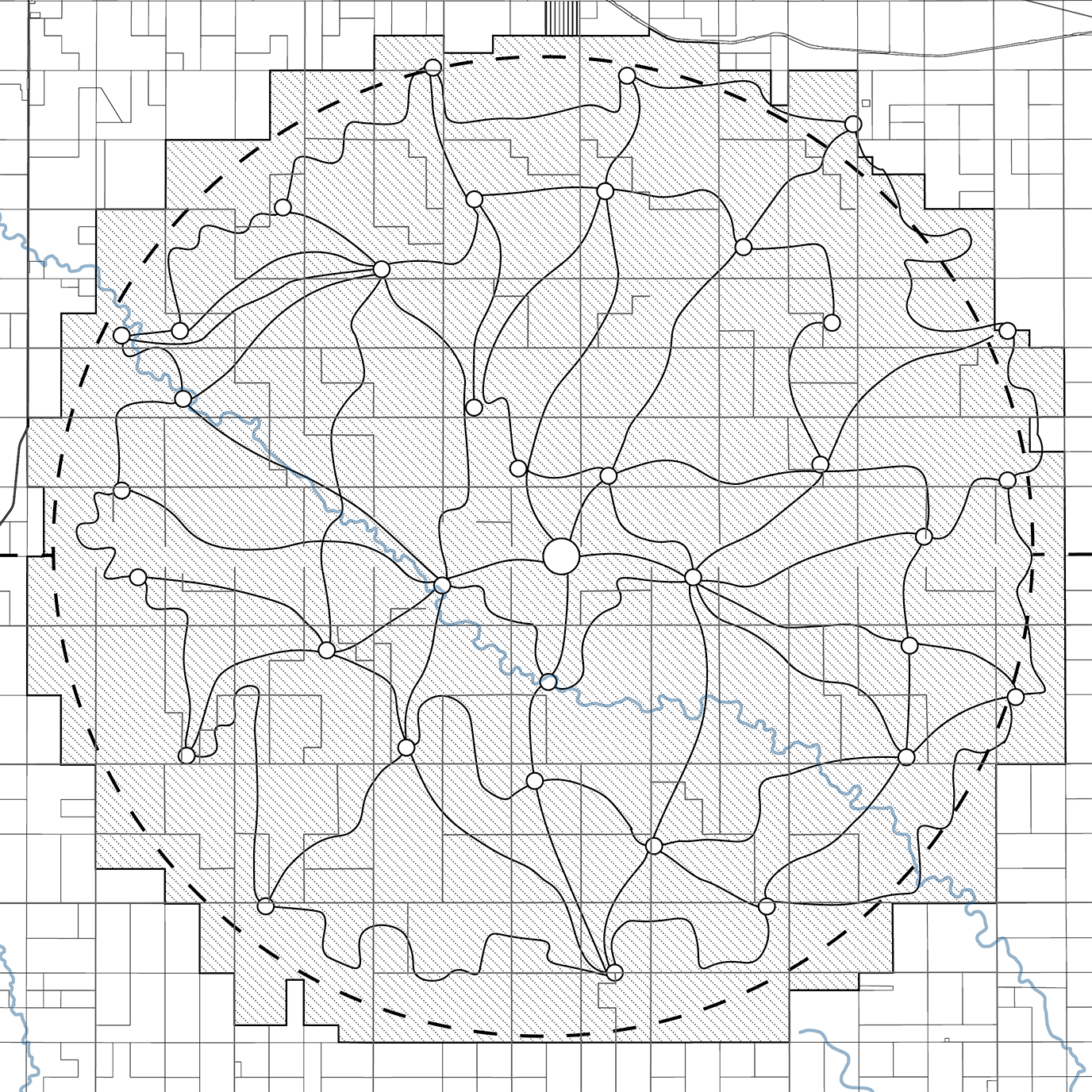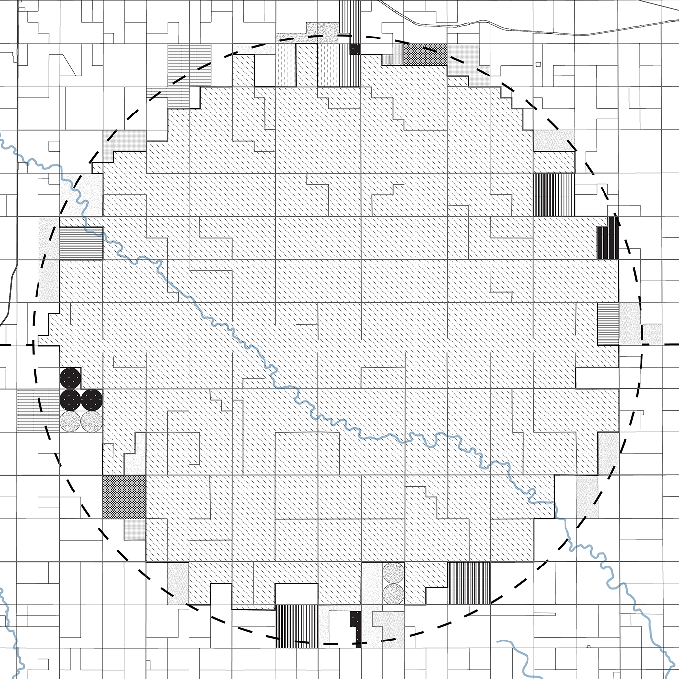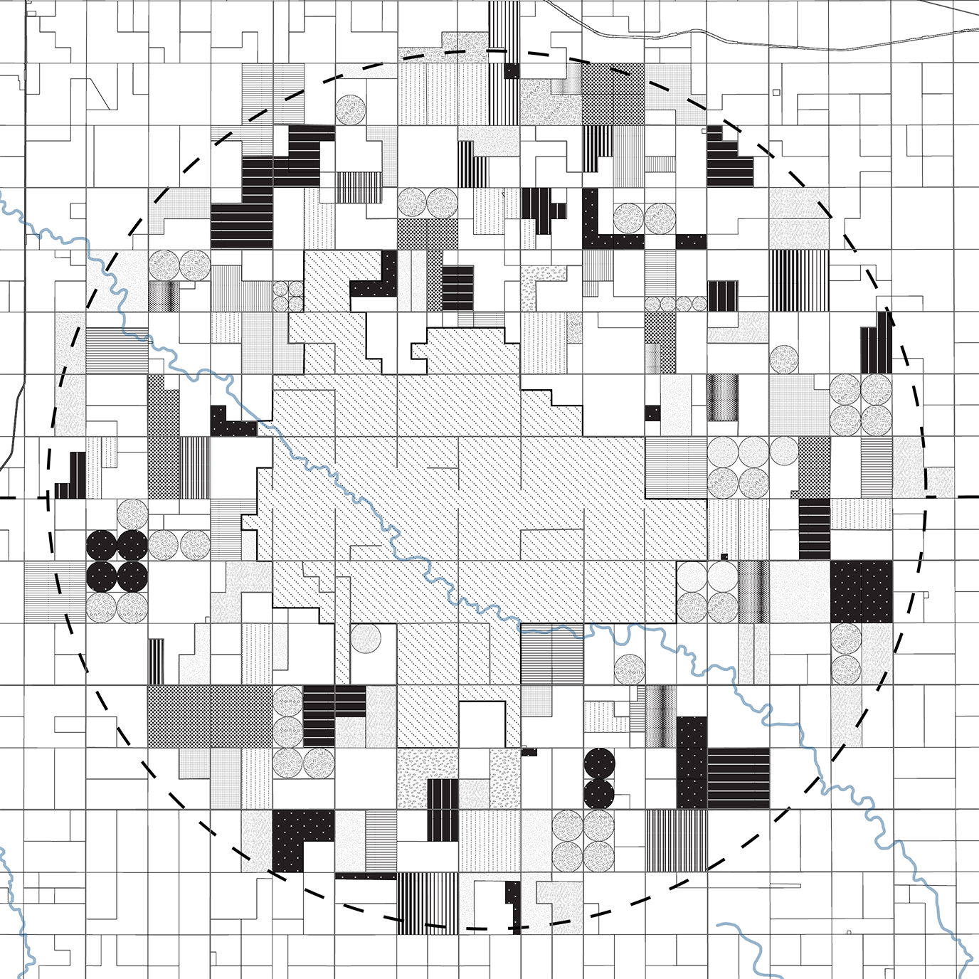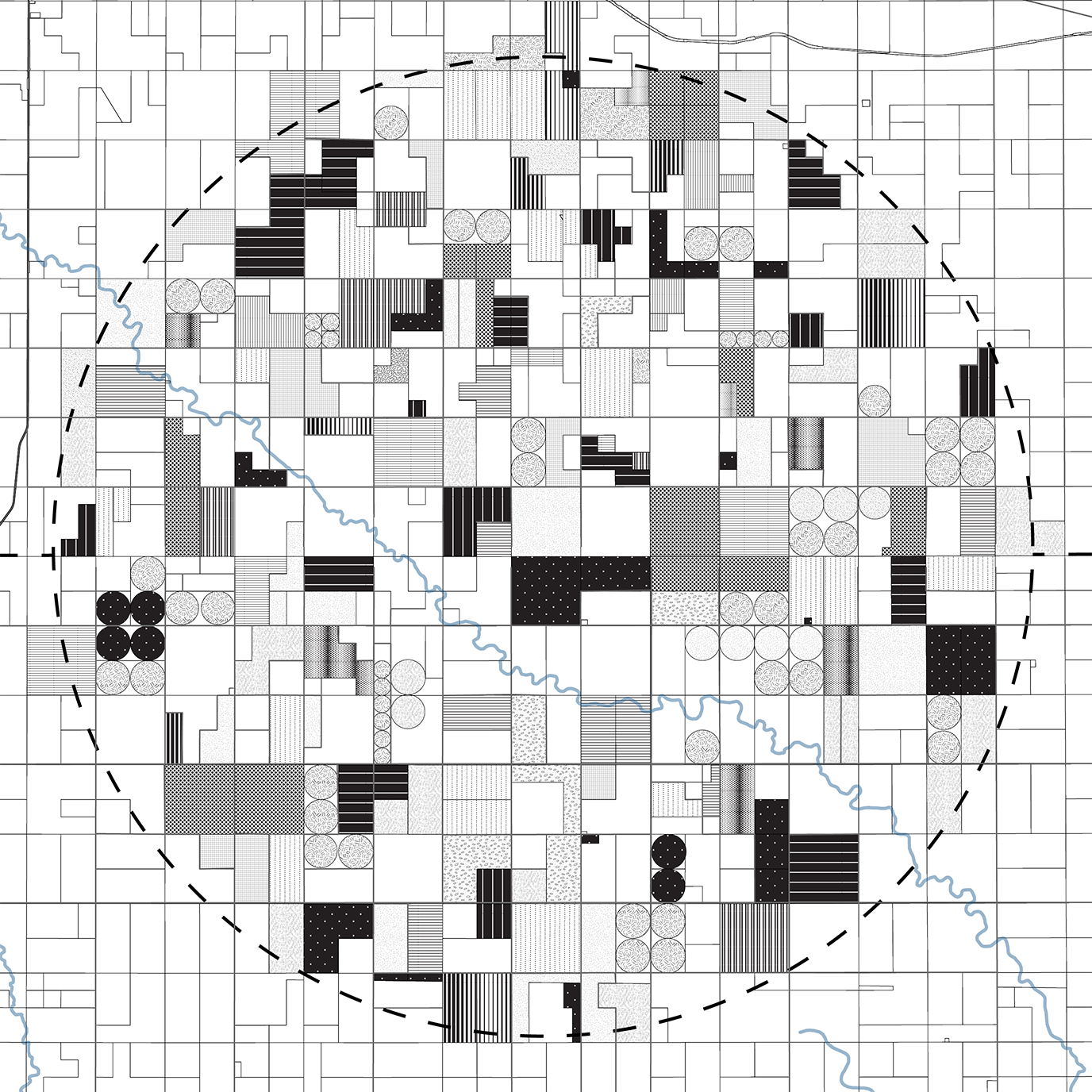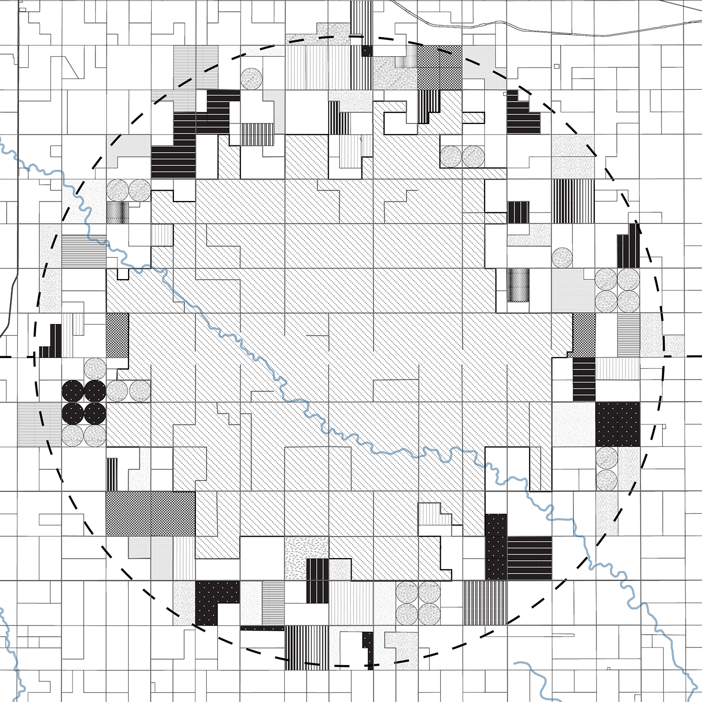 This plan proposes a process of deparcelization beginning with the acquisition of land on the US/Canada border. This initial parcel will serve as the central point where habitat restoration begins. Local Indigenous communities will lead in decision making around prioritization of land acquisition at significant sites and landscape features radiating out from this central point. Repurposed roadways and new pathways will connect these sites as land is acquired and habitat restoration follows. As land is reclaimed and the circle fills out, the site takes on the form of a dreamcatcher, a symbol of solidarity among Indigenous Peoples throughout the Americas.